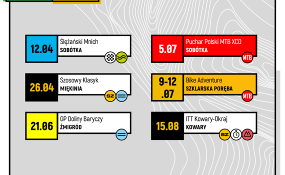 Sześć wyścigów w tym aż dziewięć dni ścigania. Tak prezentuje się kalendarz wydarzeń nad którymi patronat obejmuje VeloBank VIA Dolny Śląsk. Niezmiennie nasze wyścigi w znakomitej większości dedykowane są kolarzom amatorom. Wyjątkiem w tym sezonie będzie Puchar Polski MTB XCO gdzie oprócz amatorów, na trasę wyruszą również zawodnicy licencjonowani […]